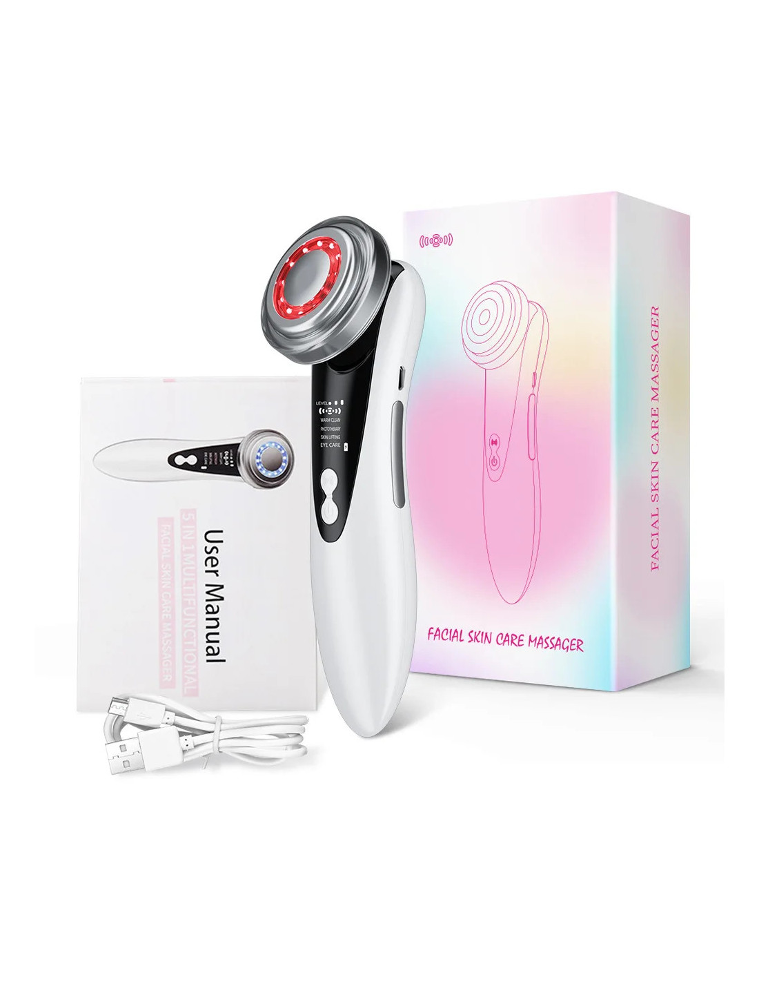 Le 5 In 1 Eye Beauty Facial Massager est un appareil multifonction conçu pour prendre soin du contour des yeux et du visage. Grâce à ses 5 technologies intégrées, il aide à améliorer l’apparence des rides, des cernes, des poches et du relâchement cutané.