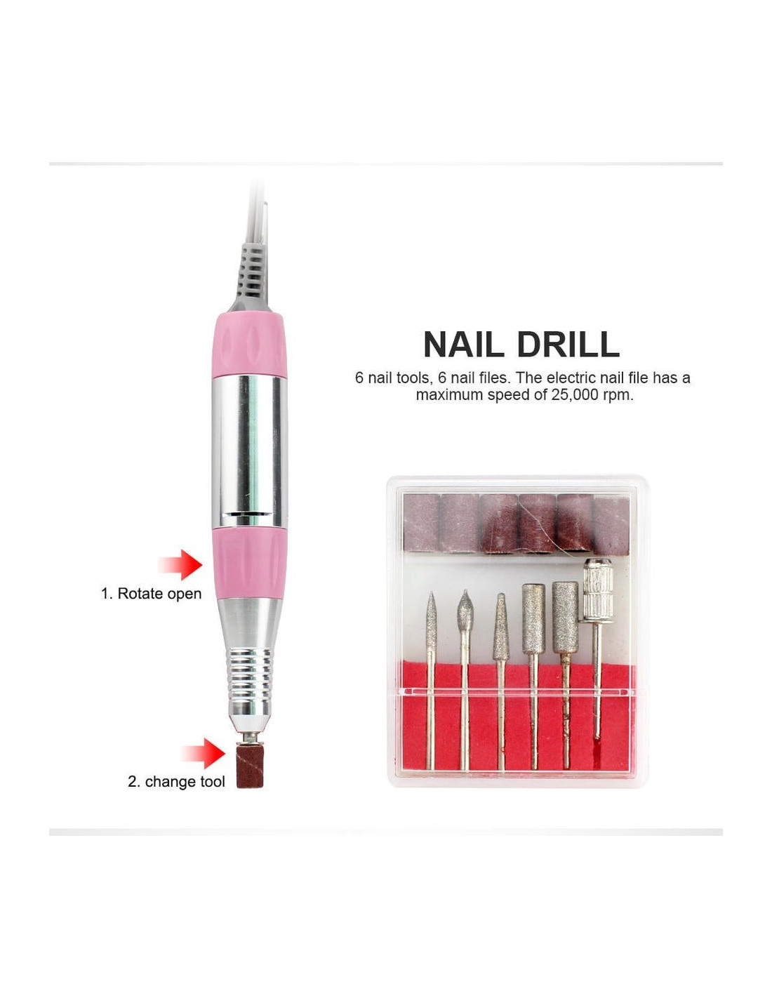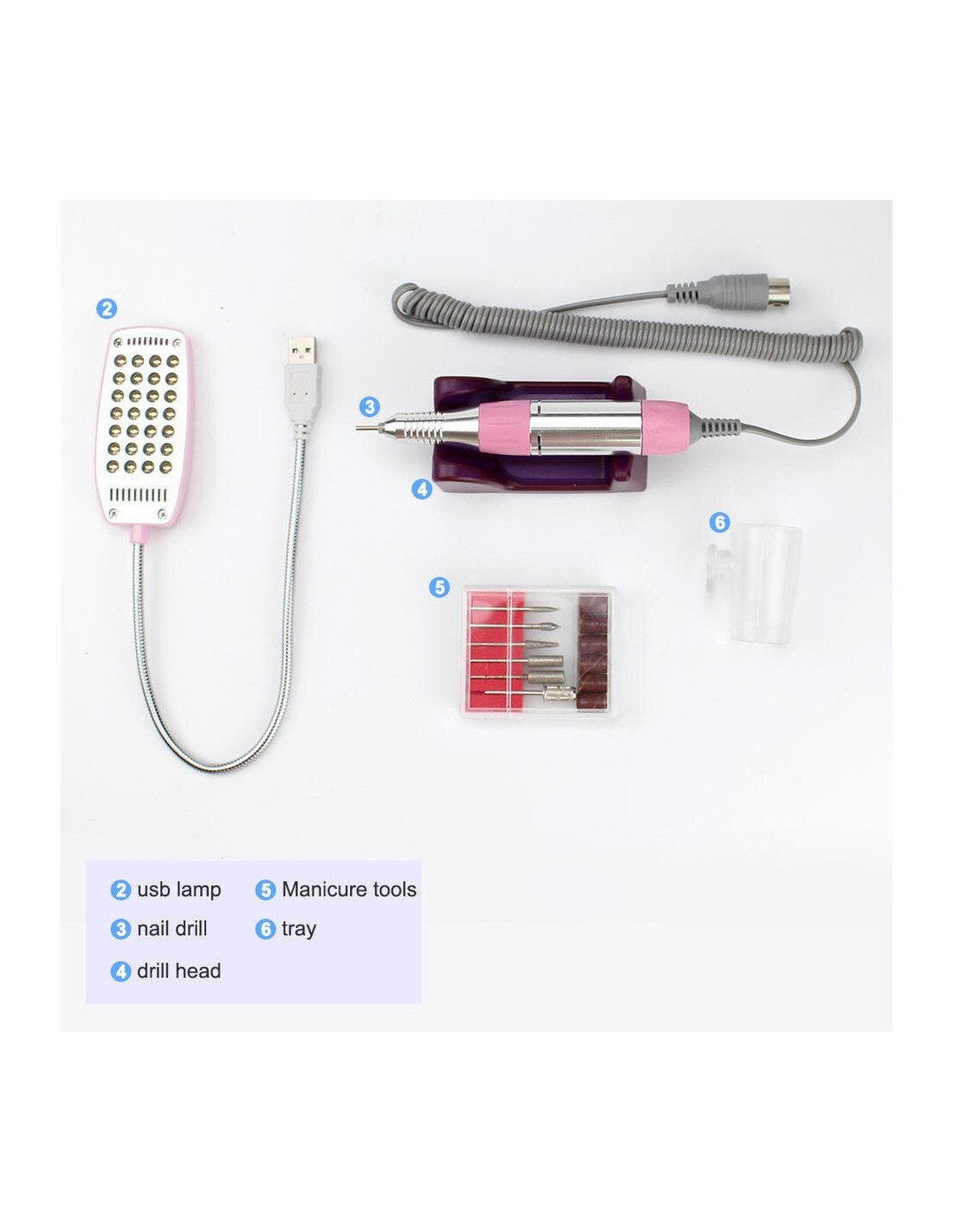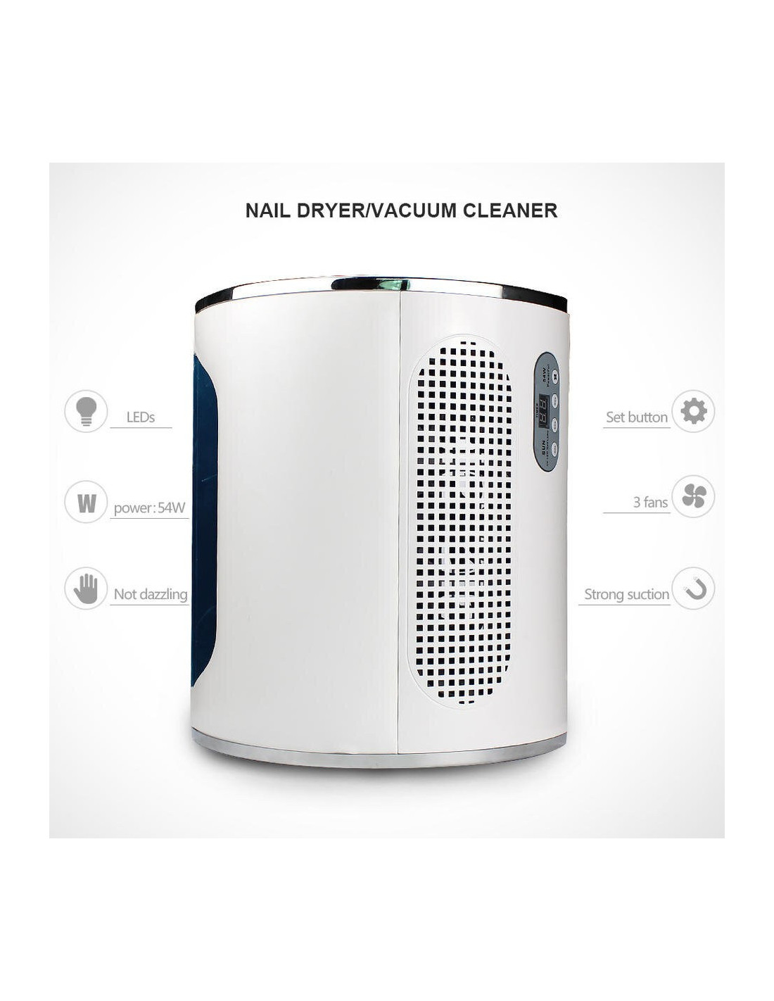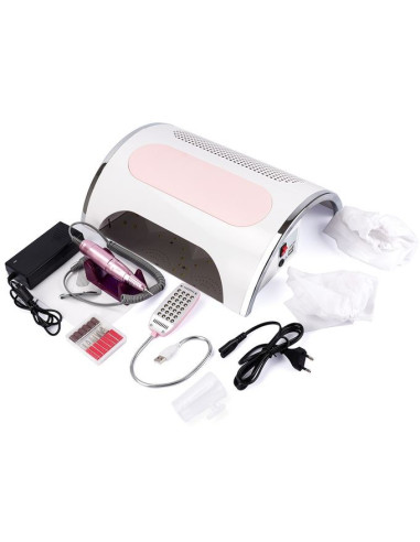 Lampe UV pour ponceuse à ongles 54W, aspirateur, collecteur de poussière, perceuse 25000 tr/min, Machine de manucure, dissolvant, outils de polissage * Caractéristique: Machine de nail art 1.3 en pour polir vos ongles, collecter la poussière des ongles, sécher les gels à ongles. Bonne qualité, mouvement super durable. 36 perles de lumière UV pour un séchage rapide. Lampe USB avec 28 perles de lumière blanche LED, permet de travailler dans une situation sombre. 3 ventilateurs peuvent aspirer la poussière rapidement et complètement. Forte puissance de 54W, faites fonctionner votre nail art rapidement et efficacement. Japon roulements importés, pas de chaleur et faible vibration avec un RÉGIME réglable (0-25000 TR/MIN), qui peut fonctionner en douceur et rapide. Avec sa taille compacte, il peut être facilement installé et démonté. Il est destiné à une utilisation professionnelle en salon et à une utilisation débutant à la maison ou au salon. * Le produit Comprend: 1 x Machine Principale 1 x stylo perceuse à ongles 1 x Lampe USB 1 x Six Types de forets à ongles de base 2 x Pièce de Soutien 1 x Adaptateur 1 x Cordon D'alimentation 2 x Filtre Sac 1 x Manuel 1 x Boîte