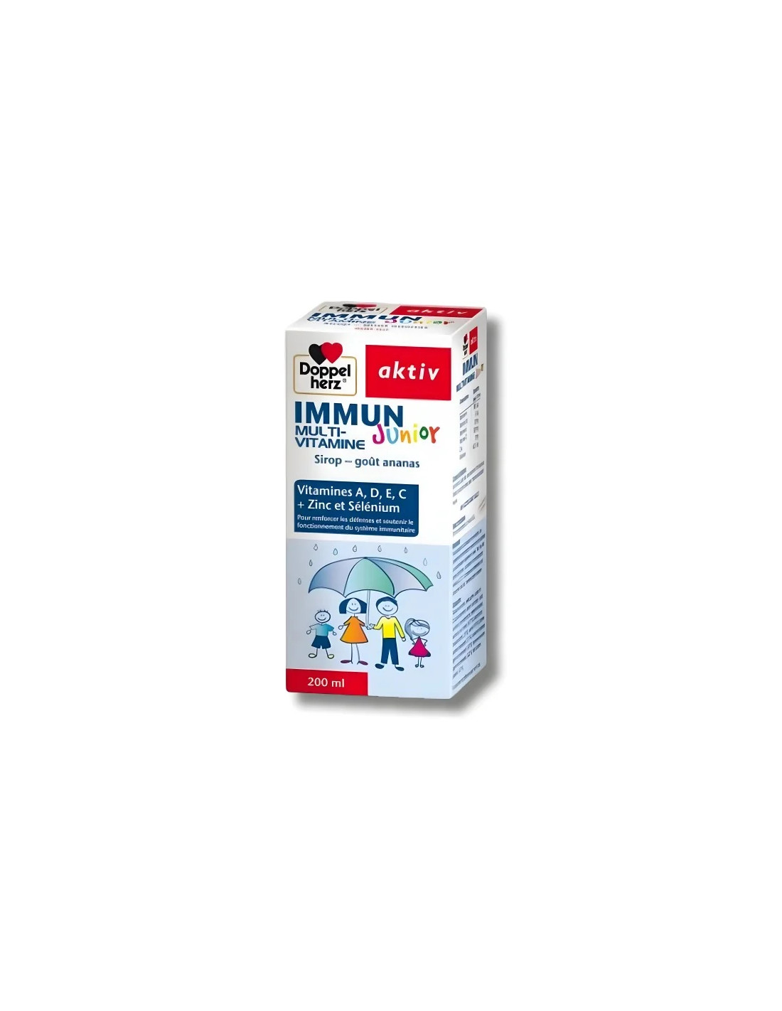 Le sirop Doppelherz® IMMUN MULTIVITAMINE JUNIOR contient les nutriments essentiels aux défenses naturelles sous forme buvable.