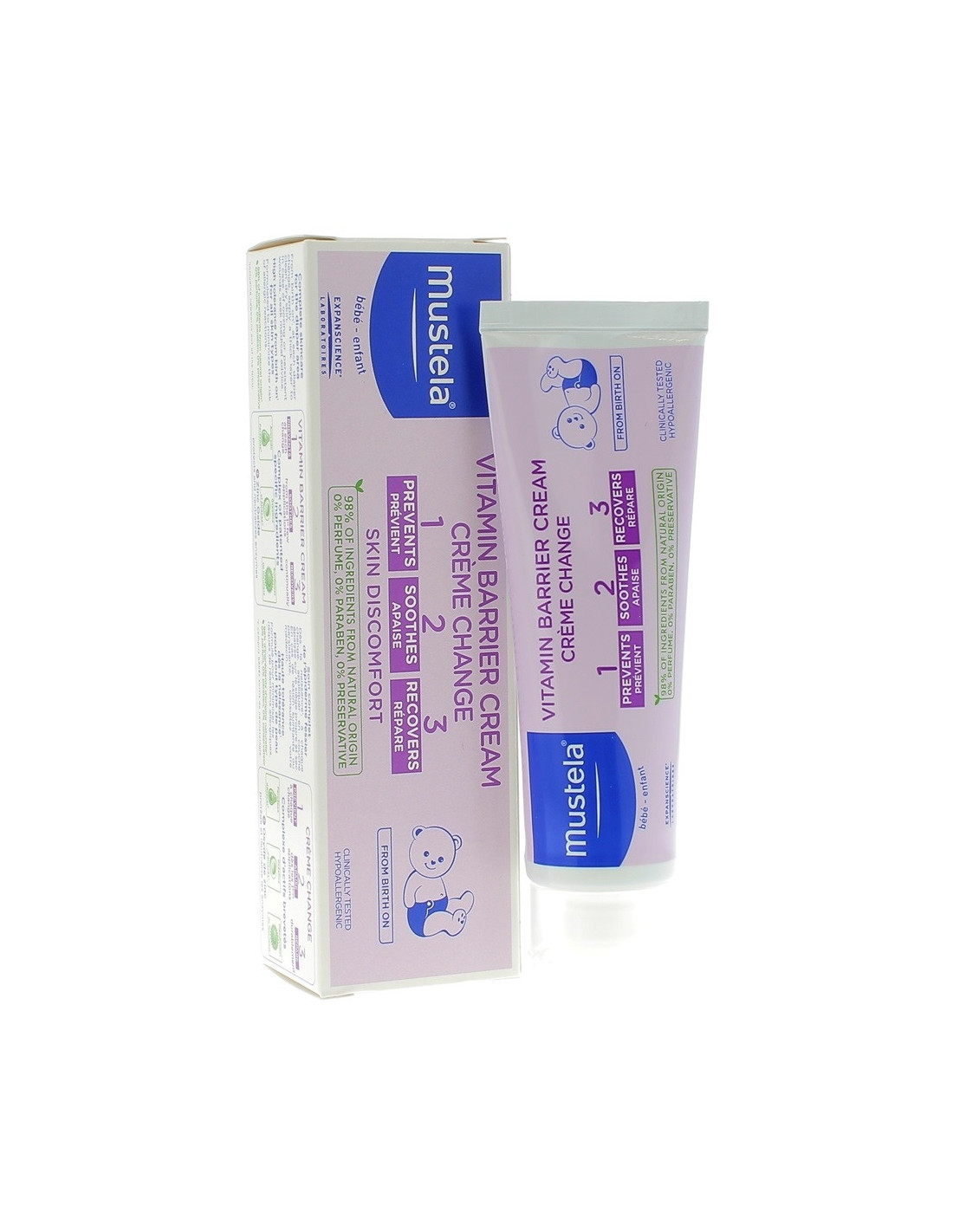 La Crème change 123 de Mustela® garantit une triple efficacité en agissant sur les irritations et rougeurs du siège en toutes circonstances, y compris de cas de diarrhée et de poussée dentaire, grâce à son complexe exclusif d'actifs d'origine naturelle brevetés :