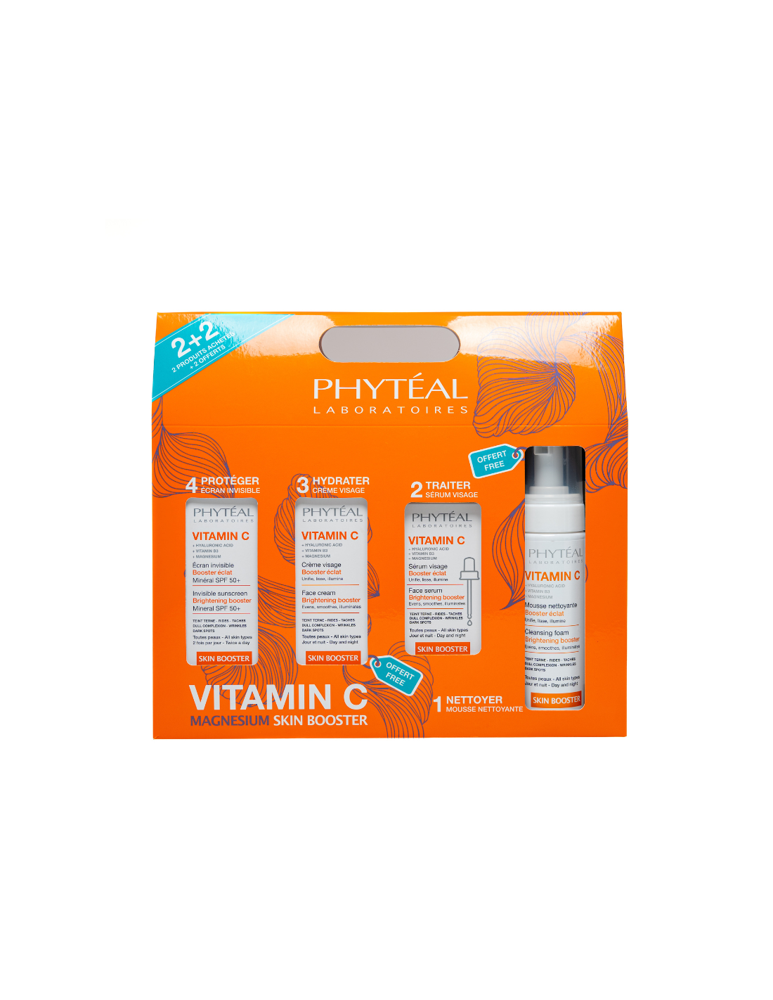 Le Phyteal Coffret Vitamine C est un duo de soins visage idéal pour illuminer et protéger la peau au quotidien. Il contient un sérum visage à la vitamine C qui aide à raviver l’éclat du teint, améliorer l’aspect de la peau et lutter contre les signes de fatigue, associé à un écran solaire invisible qui protège efficacement contre les rayons UV sans laisser de traces blanches.