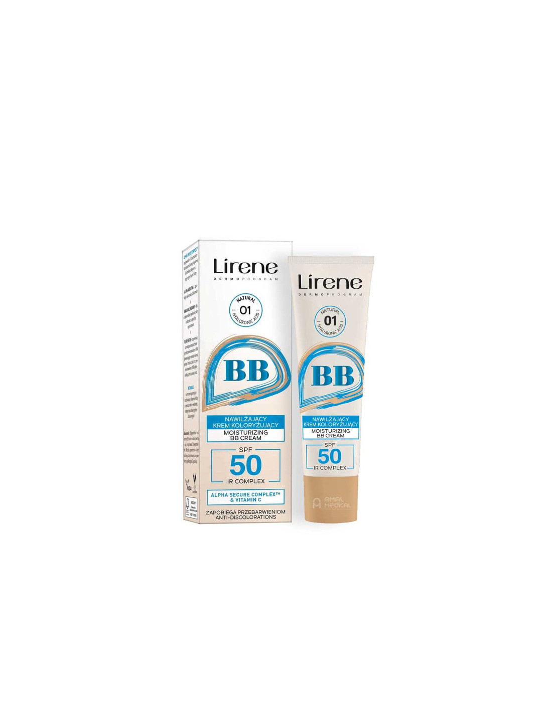 La BB Cream SPF 50 teinte 01 Natural de Lirene est un soin teinté multifonction qui hydrate la peau, unifie le teint et offre une très haute protection solaire. Sa teinte 01 Natural convient aux carnations claires pour un rendu discret et naturel.