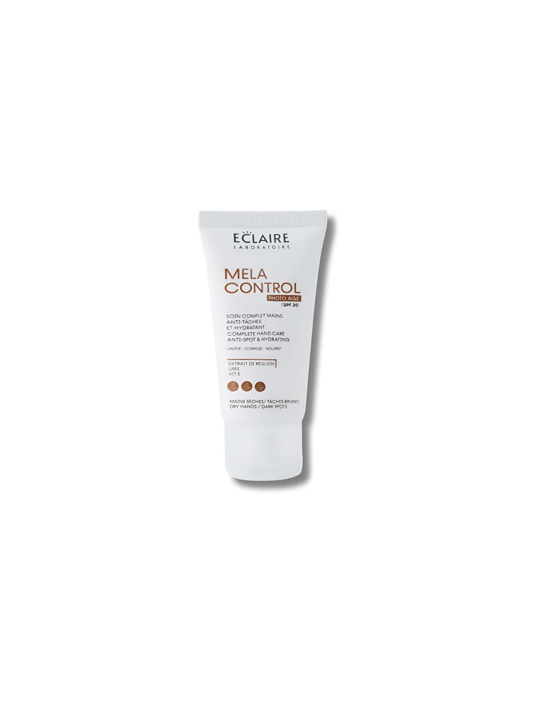 La crème Mela Control est un soin complet pour les mains qui agit simultanément sur l'hydratation et le vieillissement cutané lié au soleil.
