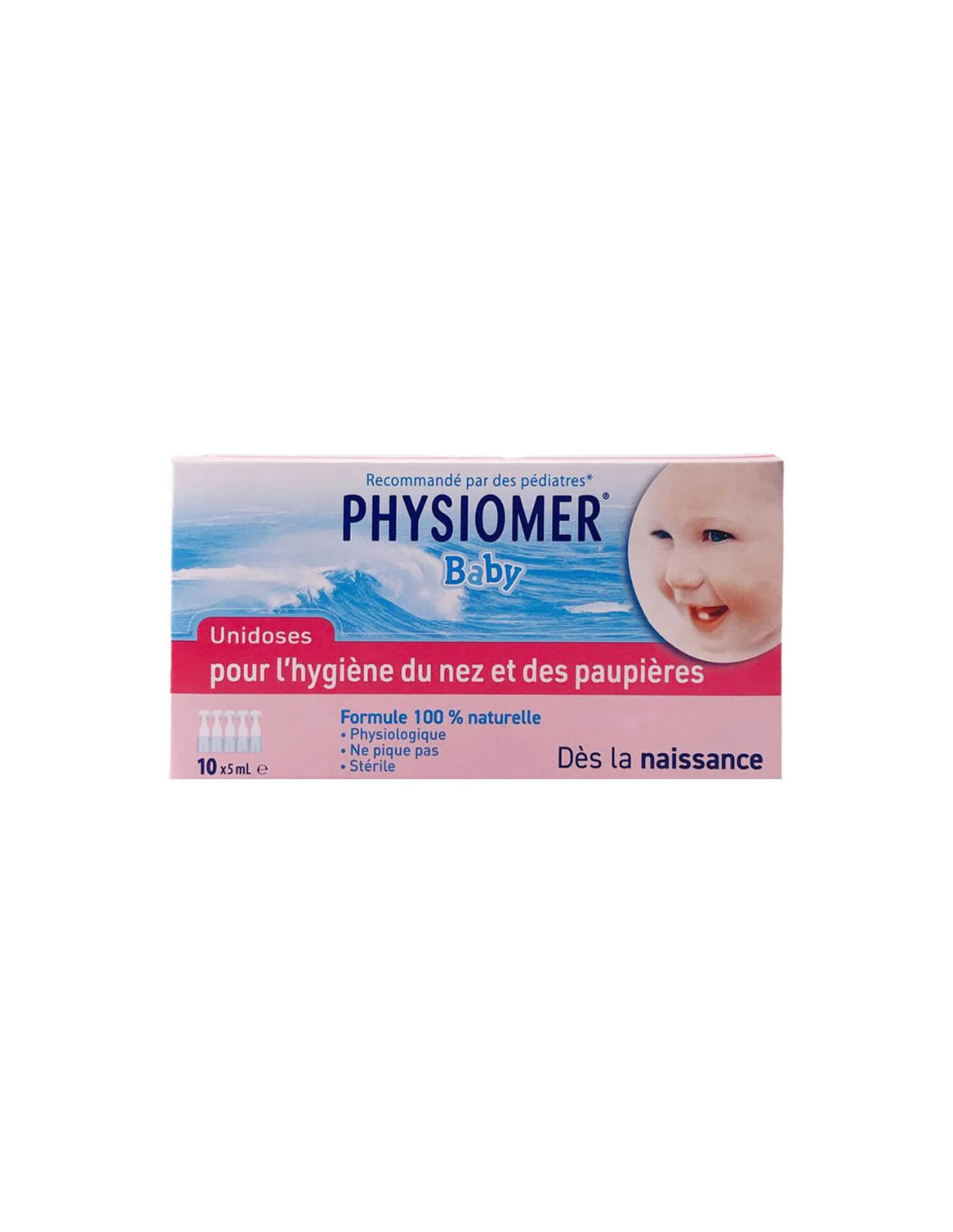 Sérum physiologique stérile spécialement conçu pour les bébés, idéal pour le nettoyage du nez et des yeux.