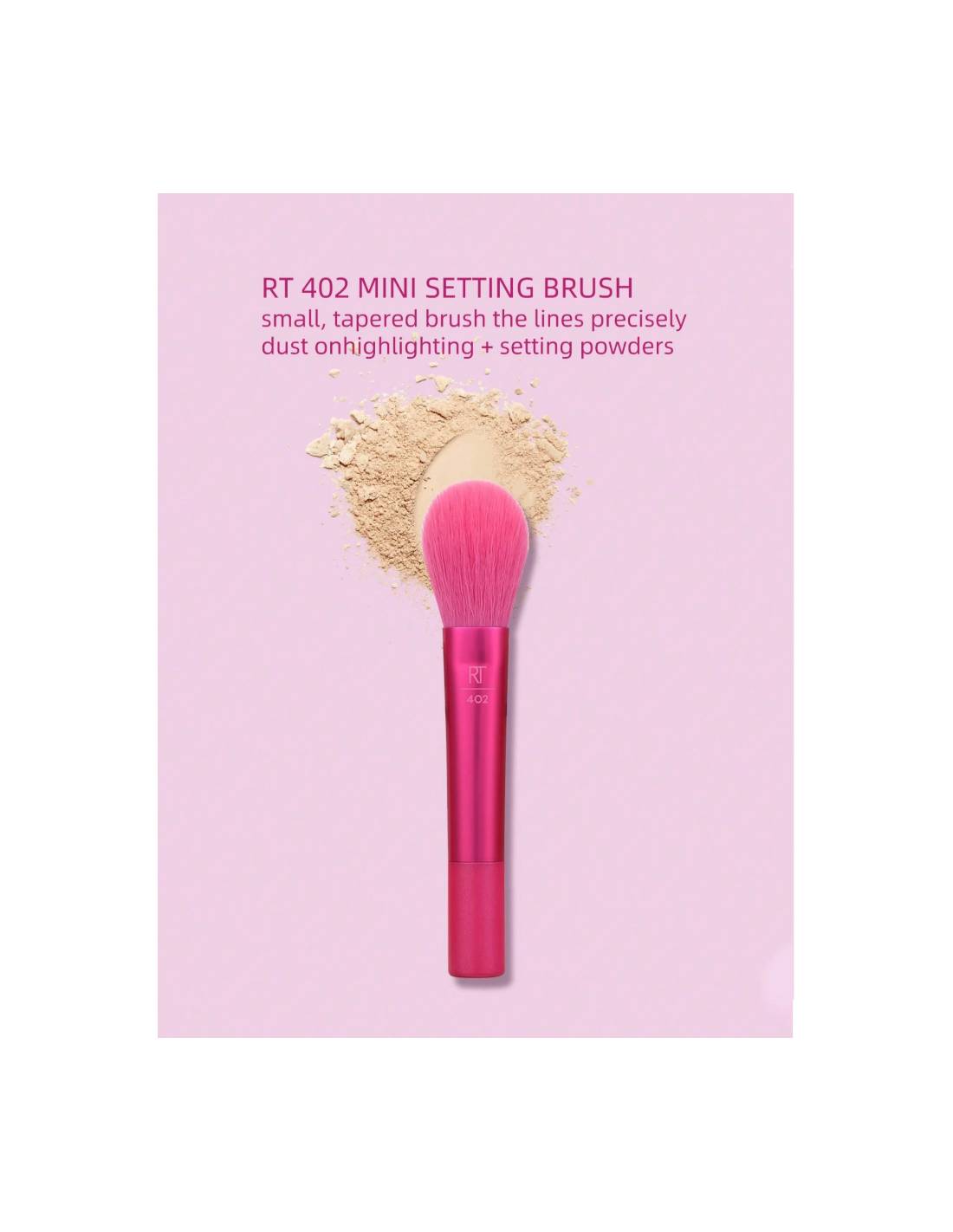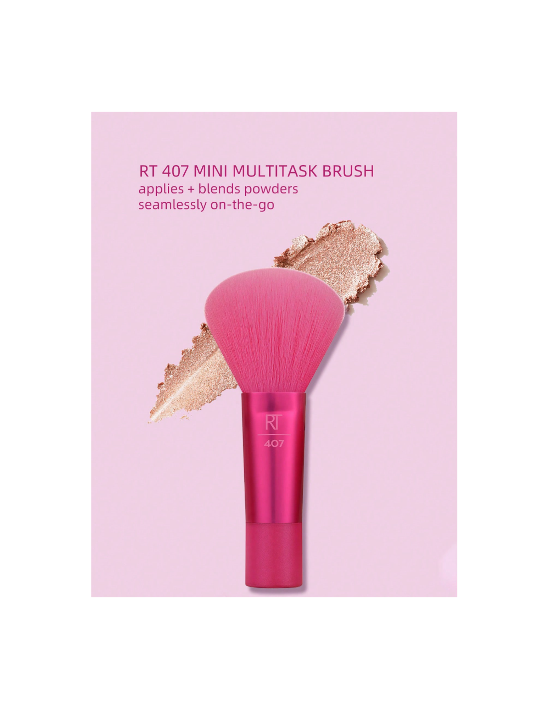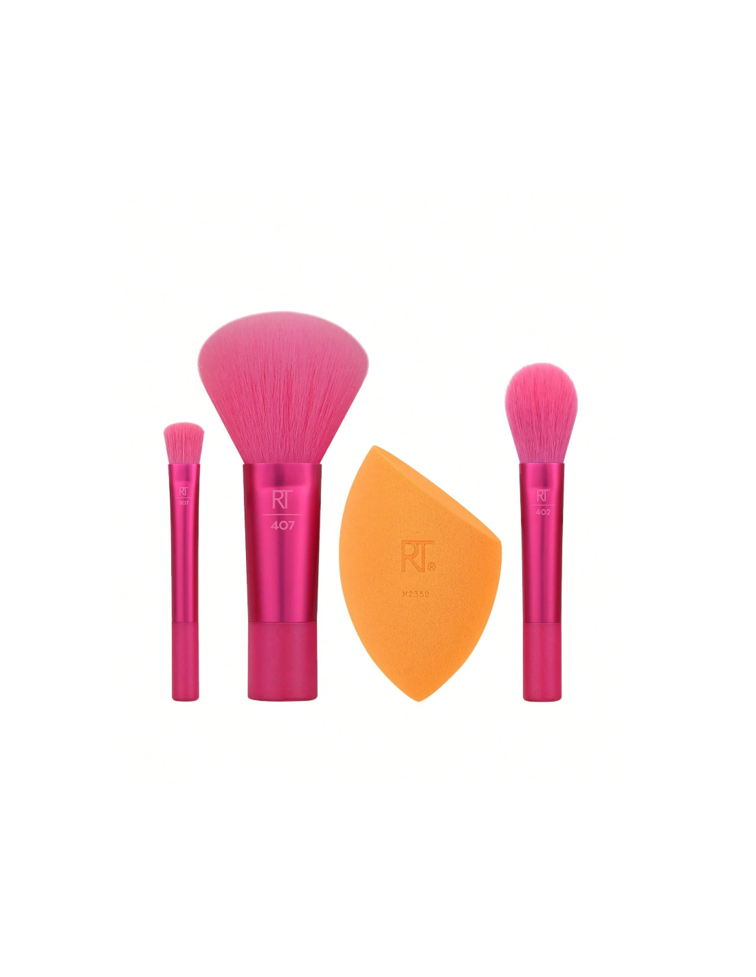 Kit de 4 outils : (1) RT 307 Mini Shading Brush, (2) RT 407 Mini Multitasking Brush, (3) RT 402 Mini Setting Brush + (4) Miracle Complexion Sponge (version mini)
