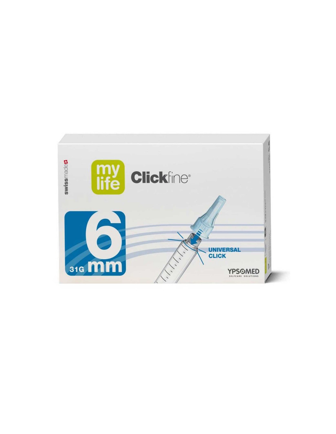 Les aiguilles Clickfine mesurent 6 mm de longueur, ce qui les rend adaptées pour les personnes qui ont une épaisseur de peau normale à mince et qui utilisent un stylo à insuline. Elles sont conditionnées en boîtes contenant 100 aiguilles.